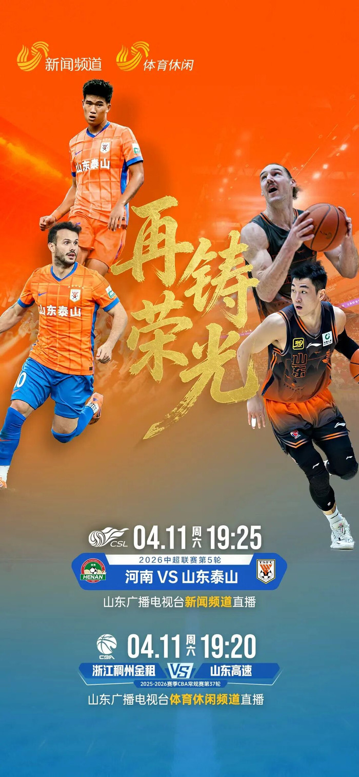 4月11日19:25,锁定山东广播电视台新闻频道,一同为山东泰山呐喊助威,期待球队客场取胜,用一场酣畅淋漓的胜利,为广大鲁蜜带来振奋人心的春日惊喜。
