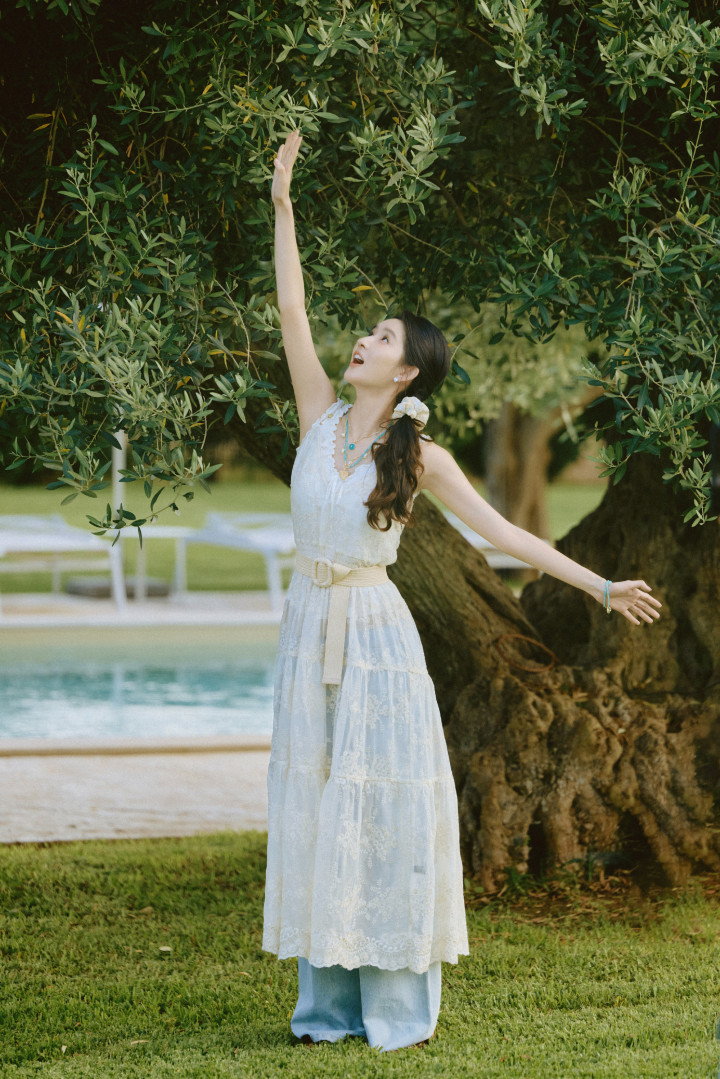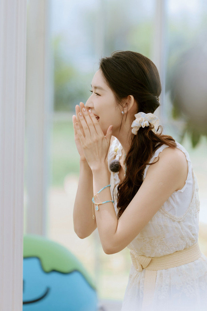 王玉雯仙女裙摆漾星河!甜笑抬手间臂线纤柔,仪态万千皆是心动注脚