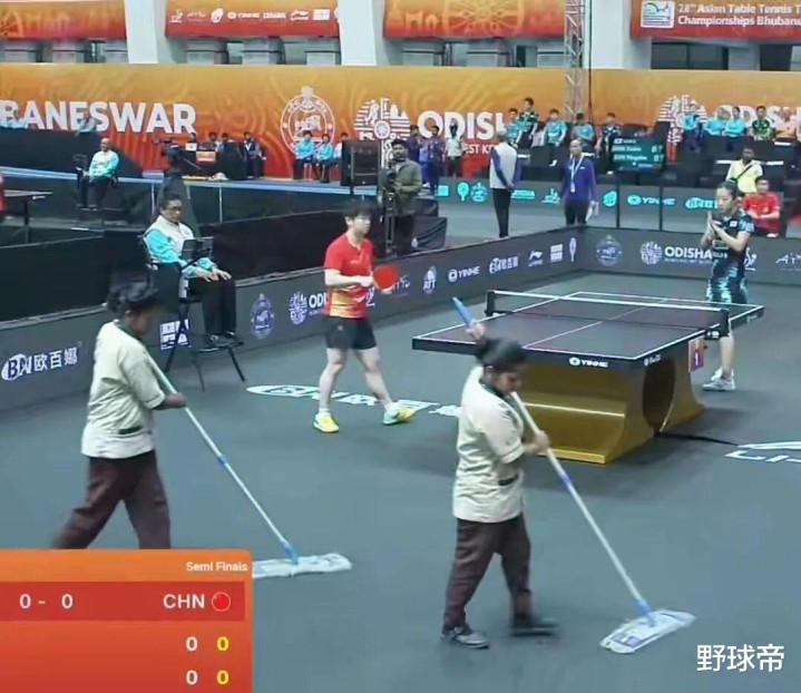 屋顶喷泉:孙颖莎正厮杀呢,头顶突然漏水,工作人员拎着拖把满场跑,场面堪比"抗洪"。